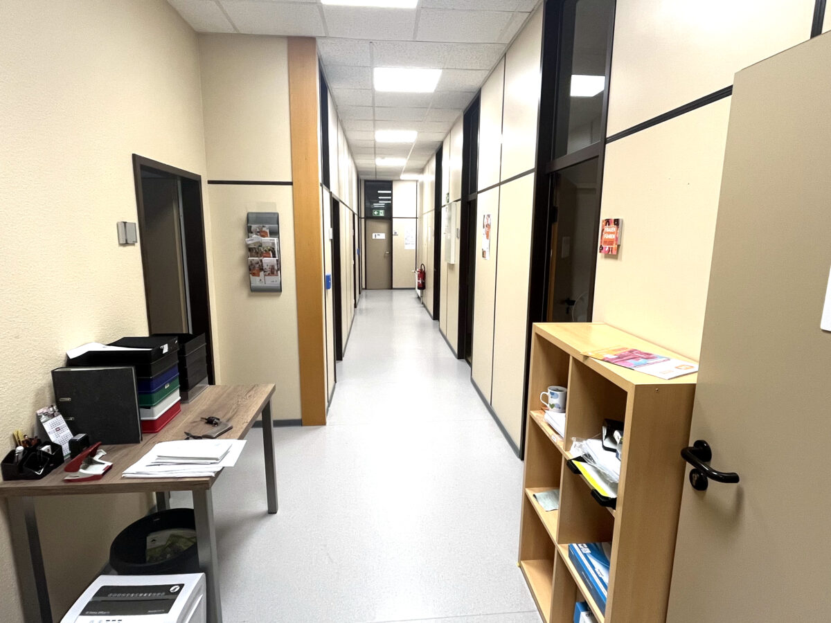 Die angebotene Gewerbefläche umfasst ca. 197 qm und eignet sich ideal für eine Büro- oder Praxisnutzung. Insgesamt stehen 9 individuell geschnittene Räume zur Verfügung, die teilweise durch Verbindungstüren miteinander verbunden und sowohl als Einzel-, wie auch als Teamarbeitsplätze zu nutzen sind. Ergänzt wird die Fläche durch eine kleine Teeküche und zwei separate WC`s.