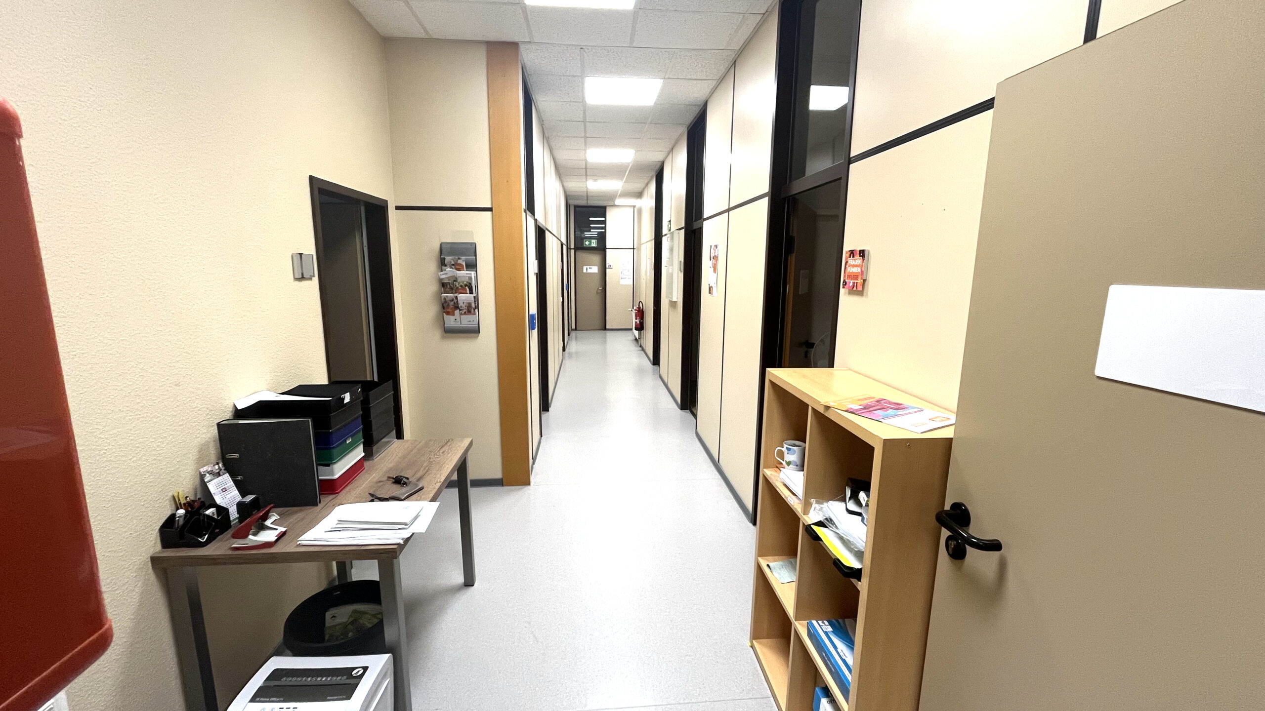 Die Böden sind aus pflegeleichtem PVC und Fliesen verlegt, was eine moderne und funktionale Atmosphäre schafft. Zusätzlich besteht ein Internetanschluss mit der notwendigen Verkabelung mit einem separaten Serverbereich für alle Räume zur Verfügung.